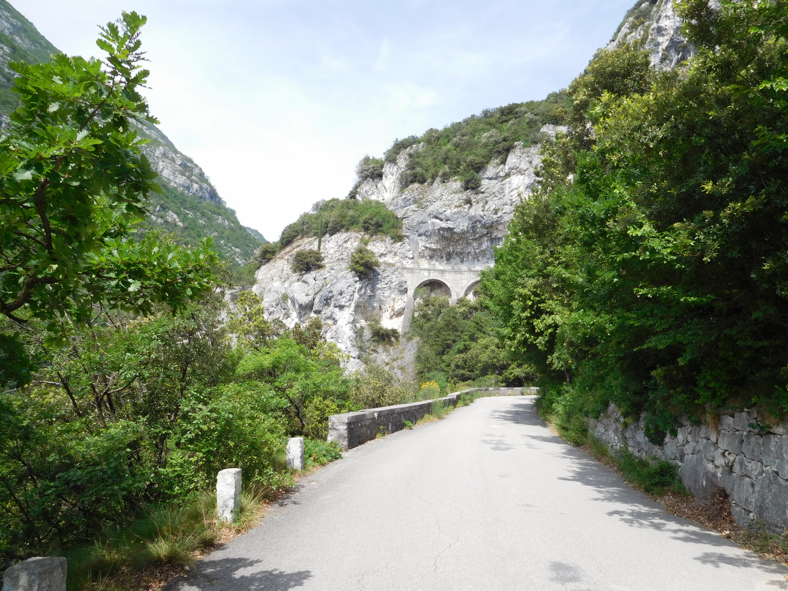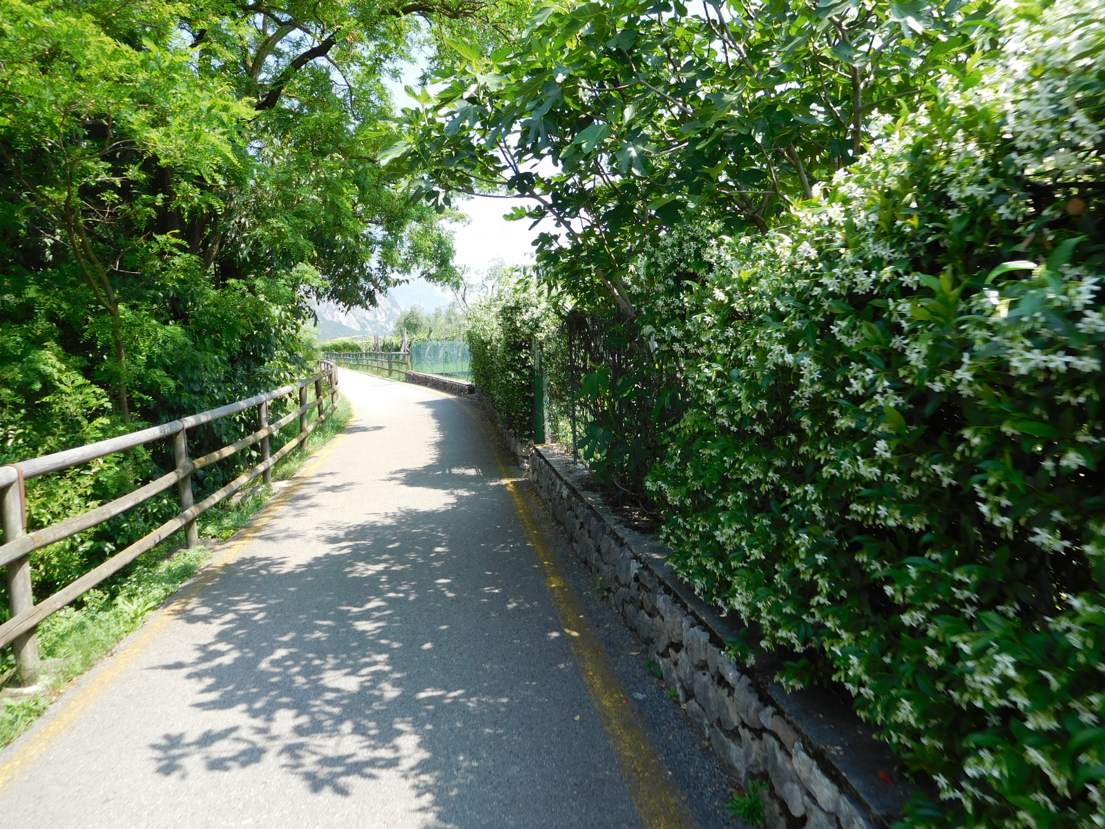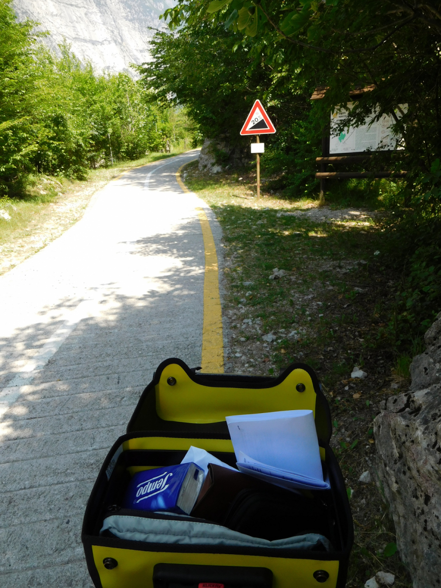 Il giorno successivo parto abbastanza presto da Arco, in direzione Riva del Garda lungo una ciclabile che costeggia una strada trafficata, ma grazie alla separazione delle corsi il tutto si svolge in assoluta tranquillità, arrivati in città si deve fare attenzione, così come nel breve tratto di statale in uscita dalla città, ma la deviazione per iniziare la strada è dopo poche centinaia di metri quindi non presenta grossi problemi. Non sono necessari fanali o giubbino ad alta visibilità, perchè si abbandona la statale prima della galleria. Mettere il rapporto agile perchè si inizia con una salita ripida anche se per pochi metri.