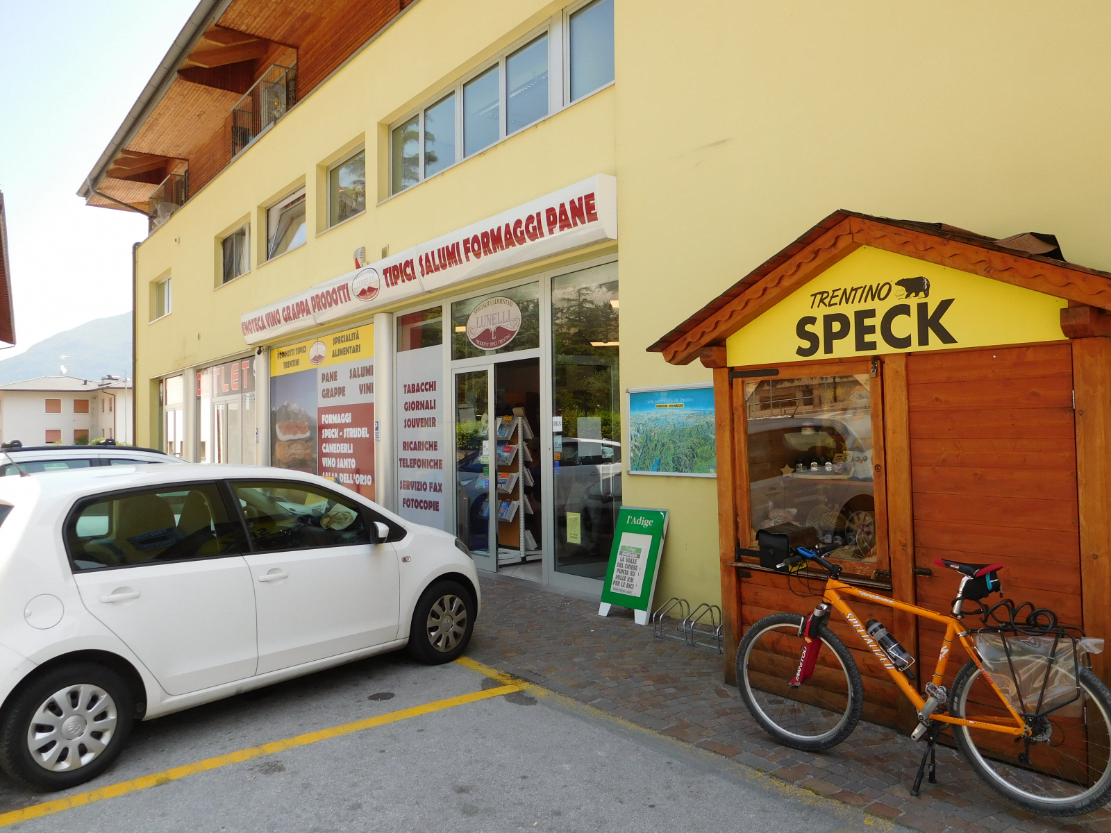 Arrivo a Sarche che ormai è ora di pranzo e mi sono approvvigionato in una bottega di prodotti tipici, uscendone con un ottimo panino con speck e formaggio che ho mangiato in un parchetto proprio dietro (basta girare attorno al caseggiato): potete anche fare ricarica di acqua.
