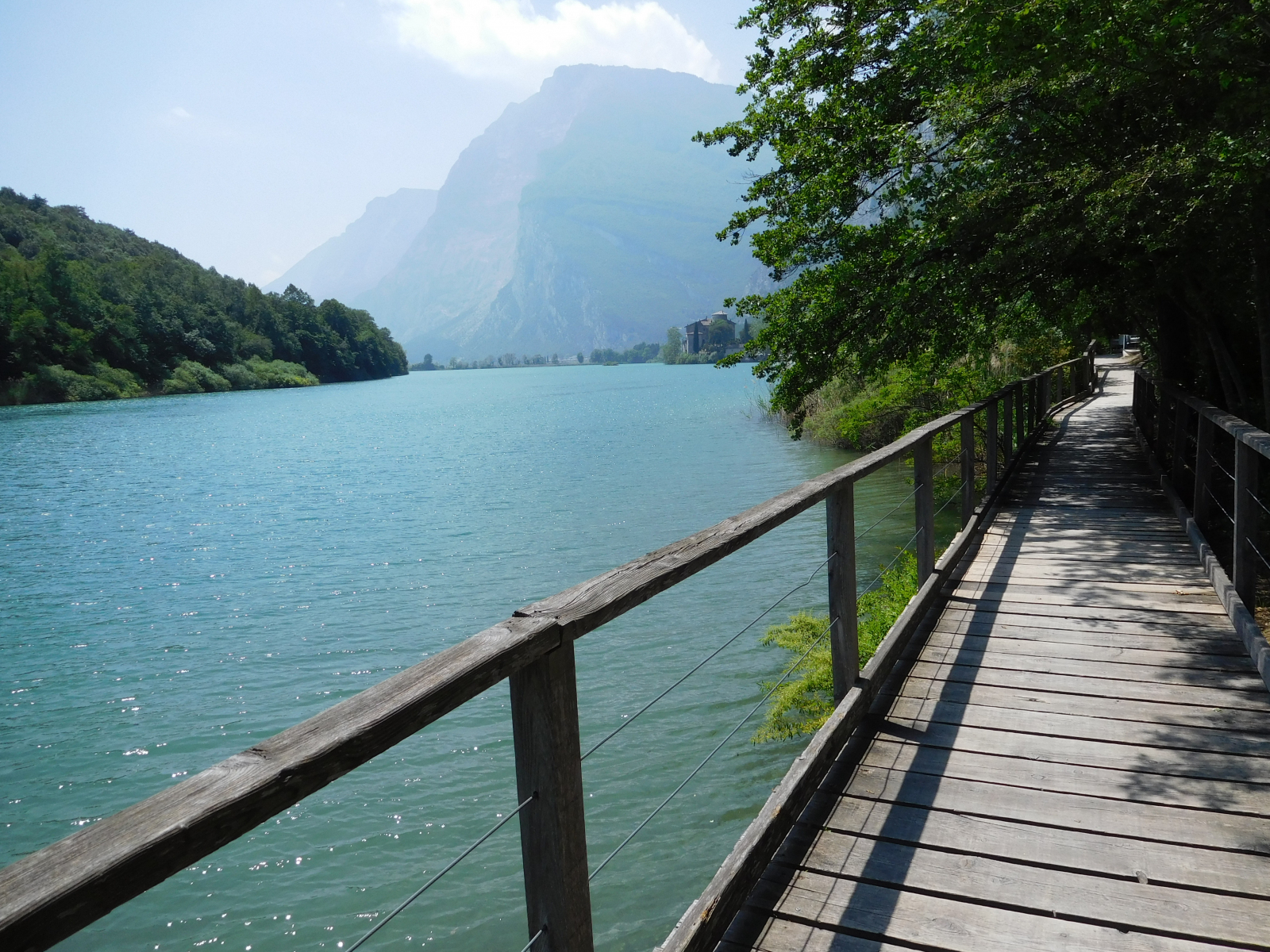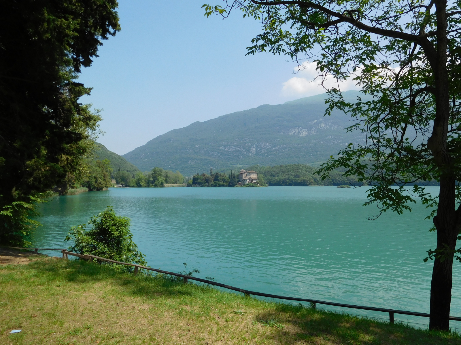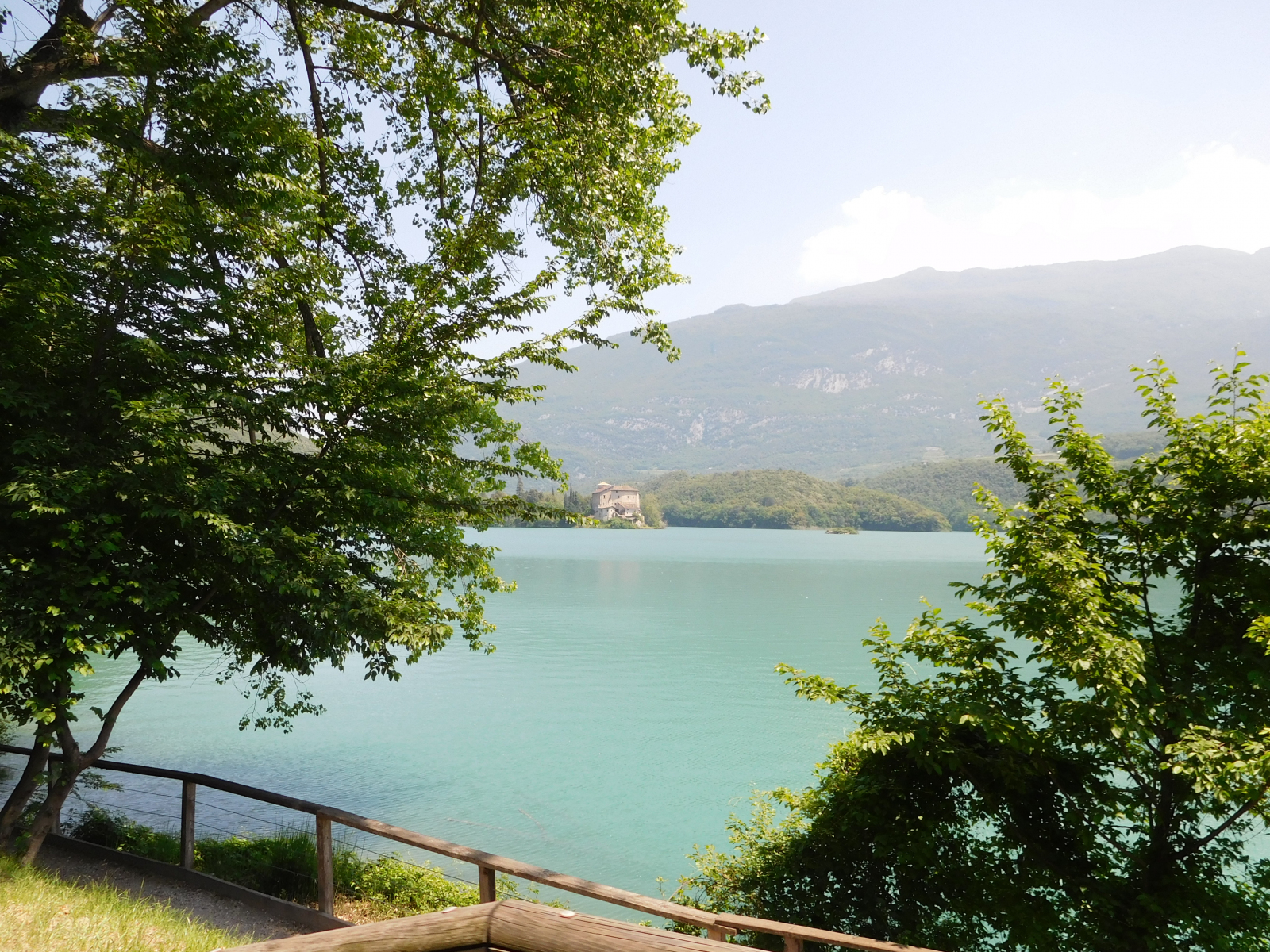 Ripartito, dopo un po’ si inizia a costeggiare il lago di Toblino, con il suo caratteristico castello (Castel Toblino) che al momento era utilizzato per un matrimonio, con tanto di sposi intenti a farsi fotografare. Si può proseguire lungo il lungolago su una stretta ciclabile sterrata, ma molto caratteristica, con ponticelli in legno. Terminato il lago di Toblino e tenendo la sinistra in direzione S. Massenza, si inizia a costeggiare il lago omonimo, molto panoramico. Giunti al limite nord si passa in mezzo ad un bel parchetto, dove se si vuole ci si può riposare, in attesa della parte più impegnativa del giro, che è il ritorno: per i meno allenati o con bambini consiglio di rientrare per la stessa strada.