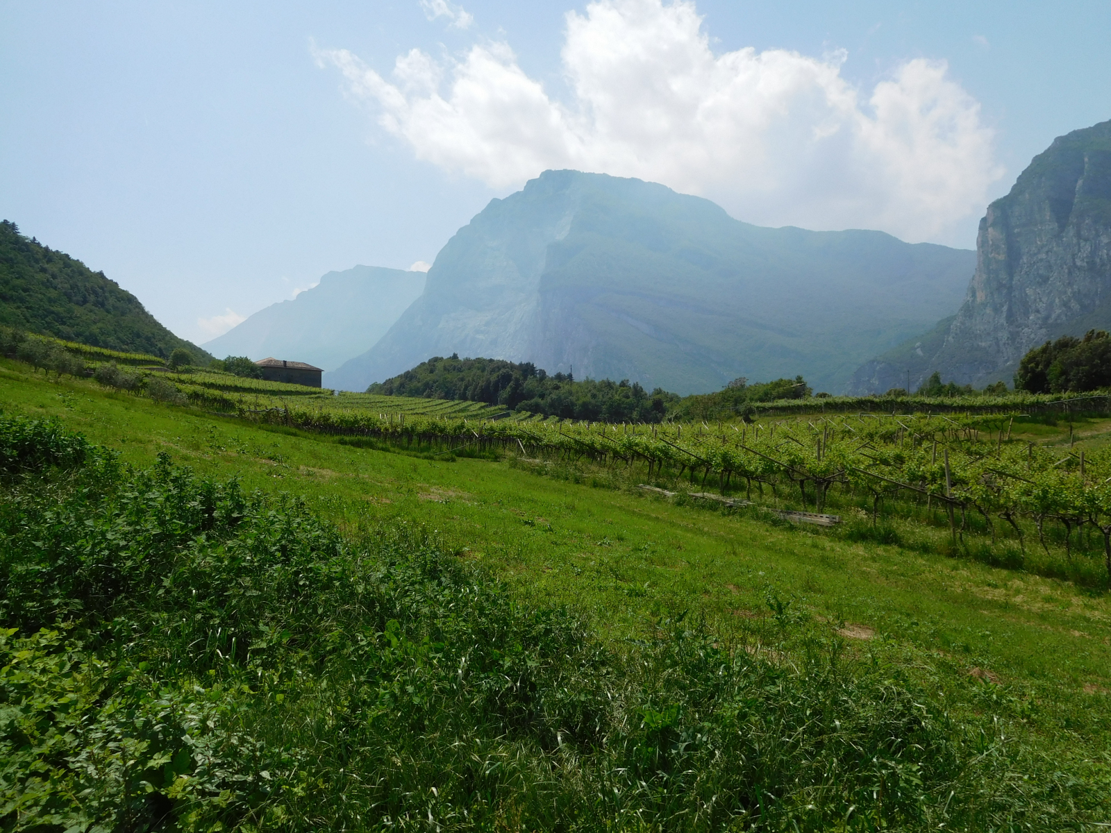 Parto da Verona non tanto presto quanto avrei voluto, per raggiungere Arco, mi sistemo rapidamente in hotel, sistemo la bici e parto. Finalmente, dopo una primavera stentata, la giornata è prettamente estiva, con un bel sole caldo. La città di Arco è ben dotata di ciclabili per cui imbocco quella che mi porta verso nord, a prendere quella che effettivamente affianca il Sarca, da li la ciclabile è su banchina isolata con due corsie, a volte un po’ troppo strette che possono diventare fonte di pericolo quando si incrociano ciclisti più sportiveggianti. La strada è comunque piacevole, il fondo perfetto ed il panorama accattivante, mentre si affiancano vigneti e coltivazione di frutta (credo fossero susine), si alternano saliscendi dolci che non offrono particolari problemi. Si procede in assoluta sicurezza e tranquillità, con l’unico punto degno di segnalazione in una rampa in cemento con una pendenza del 20% (a giudicare dal cartello) dopo circa 10.5km.